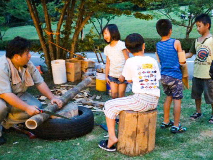 先進的にプレイパーク(冒険遊び場)に取り組むプレイワーカーと共同し、 加賀市内の自然を活用した1日プレイパークを実施